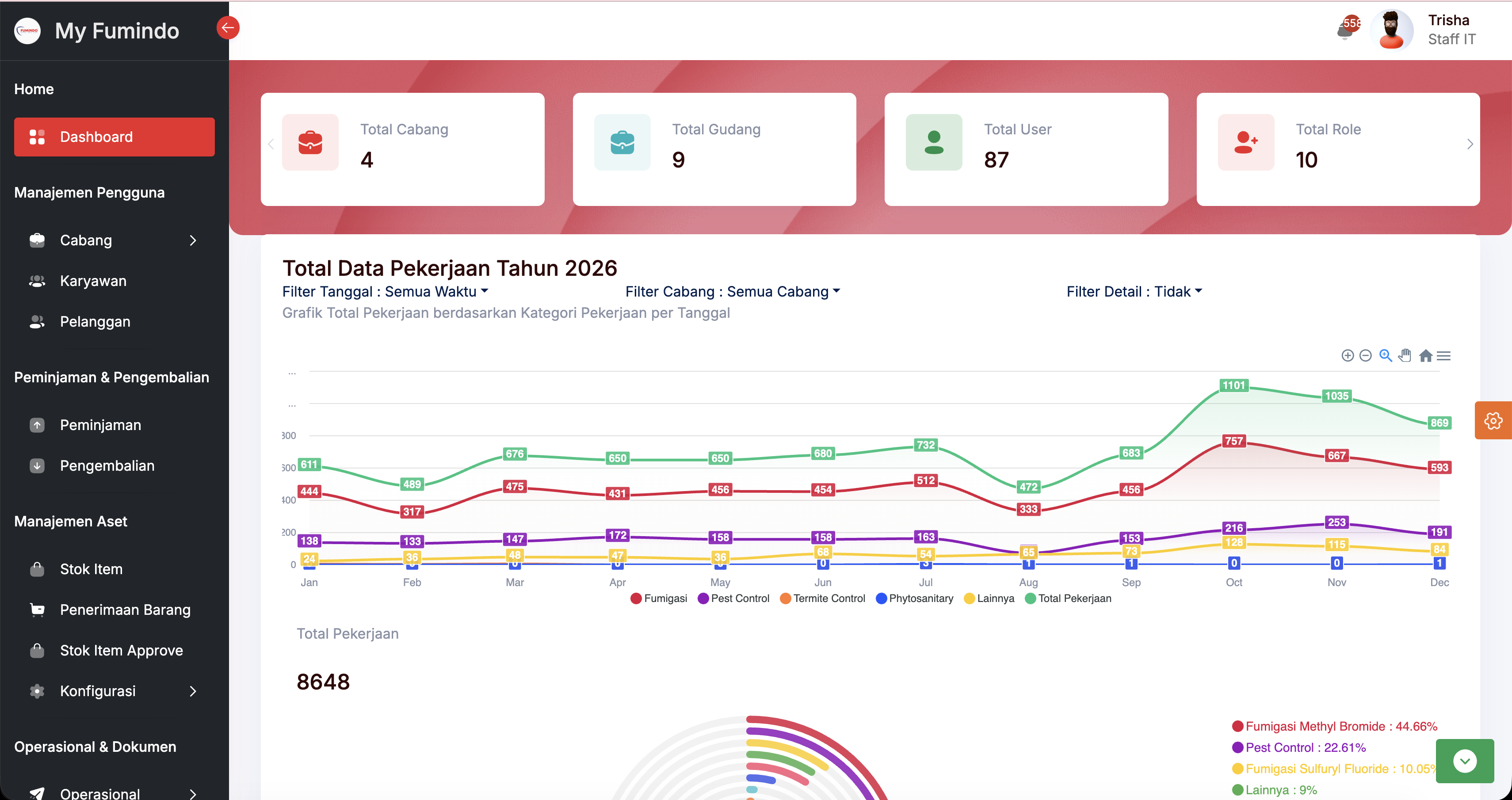 My Fumindo is an internal web-based system used by Fumindo, a fumigation and pest control service company, to manage operations, jobs, finance, and employee productivity in one integrated platform.